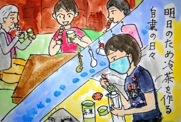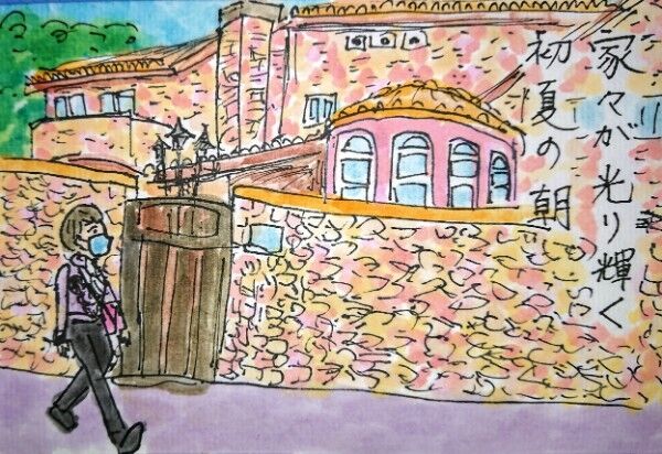 絵のバックに描いたのは、家の前に植えてあるツツジと、裏庭のトキワツユクサです。