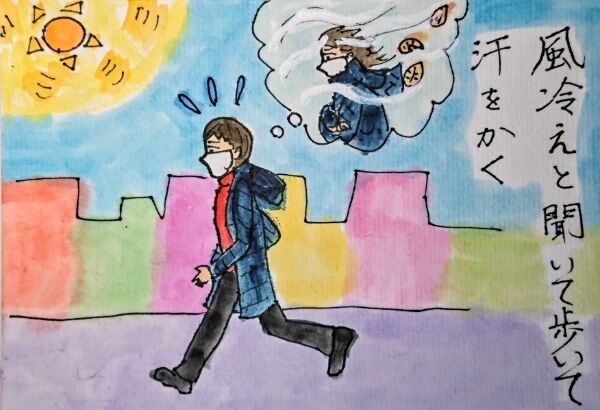 朝の天気予報で、今日は風冷えと言っていたのでダウンコートを着て出たら、思ったほど風が吹いていなくて、帰ってきたら汗をかいていて、このままだと風邪をひく、と、すぐ着替えました。