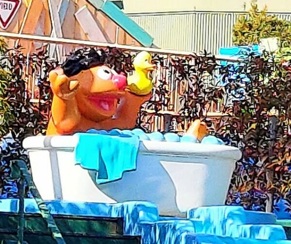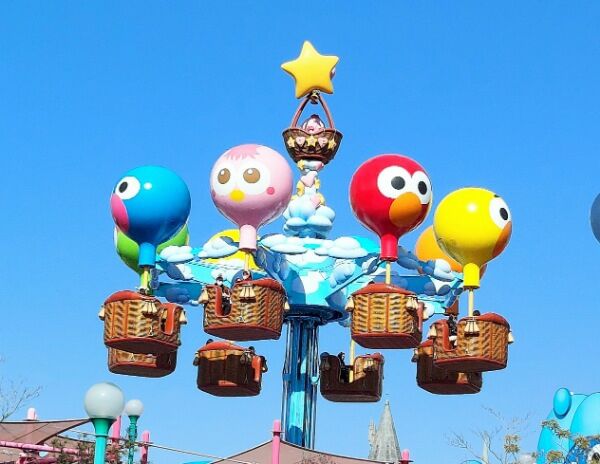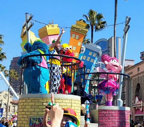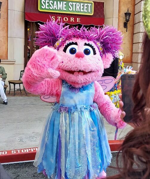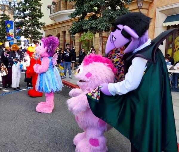 キャノピー下(入口近くの、お土産屋さんがある、屋根の下)に戻ってきたら、セサミの仲間(エルモ、アビー、モッピー、カウント伯爵)がいました。