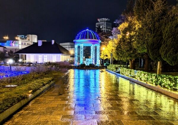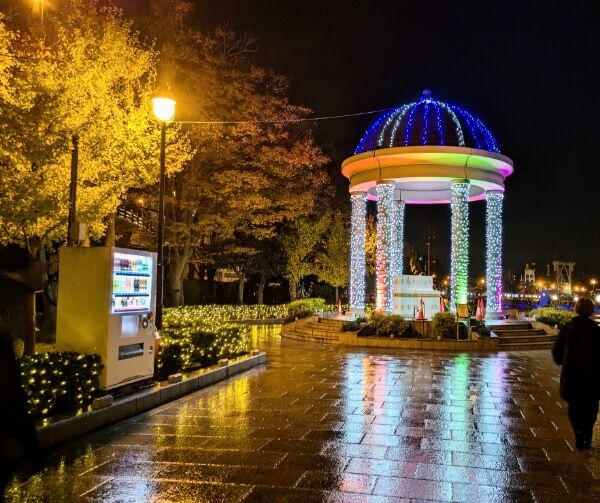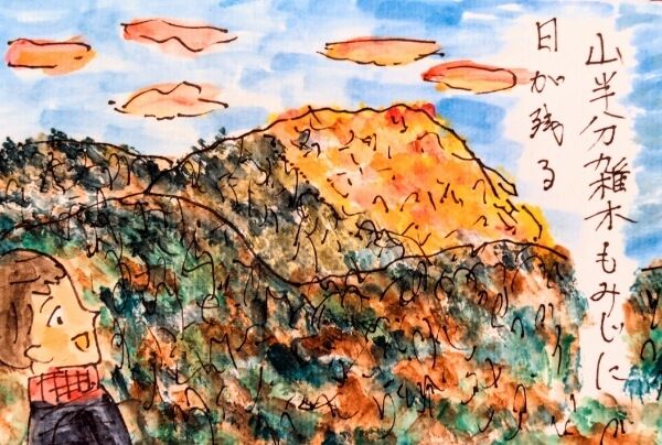 なんだか不思議に思っていたら、三角形に青空と黄葉が見えました。
