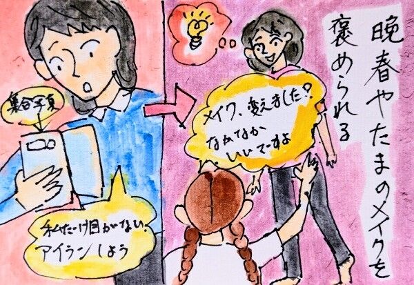 コロナ禍マスク生活以来、眉毛しか描かない、事が多いのですが、この前のミュージカル練習の集合写真が、私だけ目がない!今の小学生って、メイクしてるんですよ。