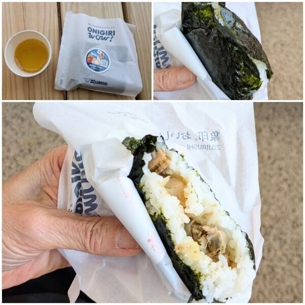 おにぎりは、ご飯が温かくてふっくら。塩味は多分なし。具が美味しかった!