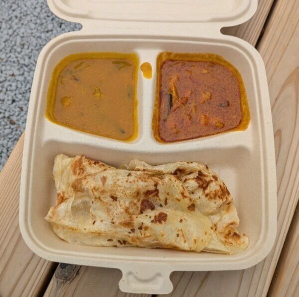 写真のセットは、下がロティーチャナイで、上の左が豆のカレー、右がチキンカレーでした。とっても美味しかった!